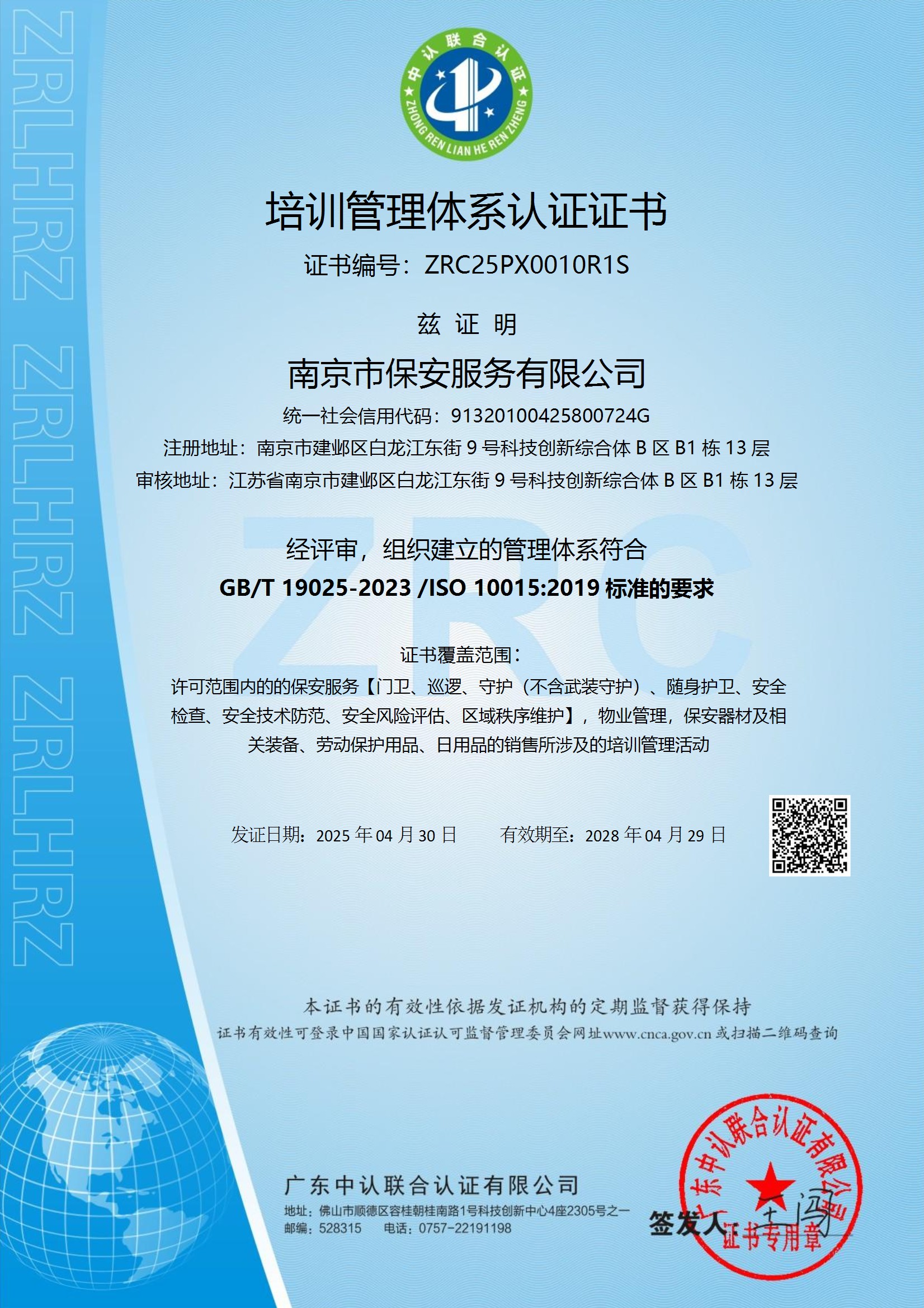 南京市保安服務有限公司(原南京市保安服務總公司)成立于1987年4月,是一個有著悠久安保經營歷史和安保經驗沉淀的大型國有保安企業(yè),現為中國保安協(xié)會常務理事單位,江蘇省保安協(xié)會常務理事單位,南京市保安協(xié)會副會長單位,江蘇省一級保安服務公司。